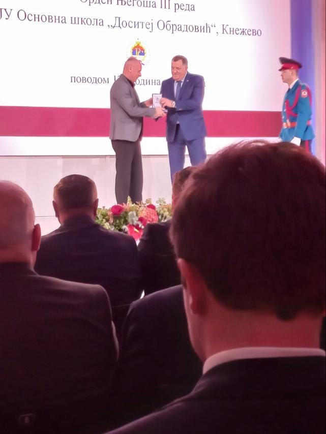 Ordenom Njegoša III reda za priznati rad u kulturnom i duhovnom razvitku, kao i za posebne zasluge na polju javne djelatnosti, kojima se doprinosi opštem napretku Republike Srpske odlikovana je JU OŠ „Dositej Obradović“ Kneževo.