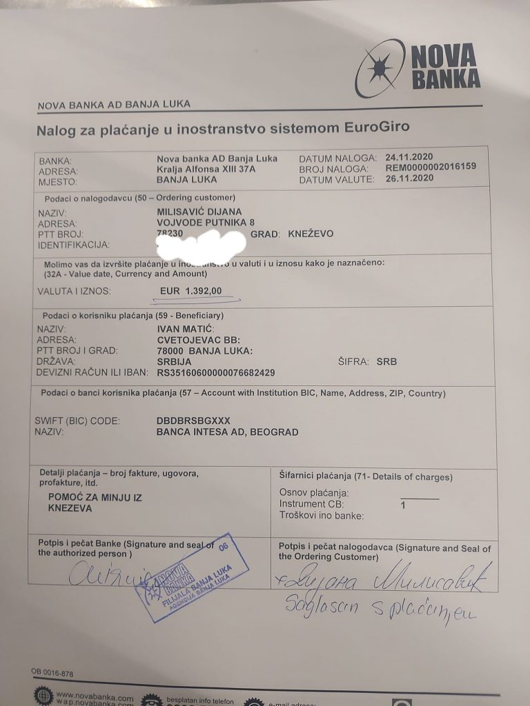 Драги моји, са Хуманитарног базара из Кнежева за Мињу Maтић је прикупљено укупно 2.706,40 КМ + 20 евра. Као организатор овог базара, не могу да рјечима опишем колико сам поносна на своје суграђане, који су увијек спремни да помогну и дају свој хумани допринос. Једноставно ово је доказ да у Кнежеву живе скромни људи, великог срца!Хвала вам много!Морам посебно да се захвалим мојим сјајним дјевојкама (Jelena Hrvacanin, Тамара Марковић, Marija Čičić, Ismeta Barjaktarevic, Nada Jokanovic), које су ми помогле у организацији и постављању излога Хуманитарног базара за Мињу у Кнежеву, затим СВИМ ДОНАТОРИМА који су обезбједили бројне производе, умјетнине, посластице, играчке, одјећу за продају на базару. Дефинитивно захвалност дугујем и нашим малишанима Дјечијег вртића „Радојка Лакић“, који су нам припремили бројне декорације, честитке и пожељели Мињи да што прије оздрави. Такође, посебну захвалност дугујем и ФК „Прогрес“ и КМФ „Кнежево“, који су изразили жељу, прикупили донацију међу својим члановима и доставили на уплату. Хвала вам од срца! Свакако, ништа ово не би имало смисла без вас драги моји Кнежевљани, који сте нас посјетили тај дан и куповином производа са базара, положили још један испит хуманости на дјелу..ХВАЛА ВАМ СВИМА ОД
