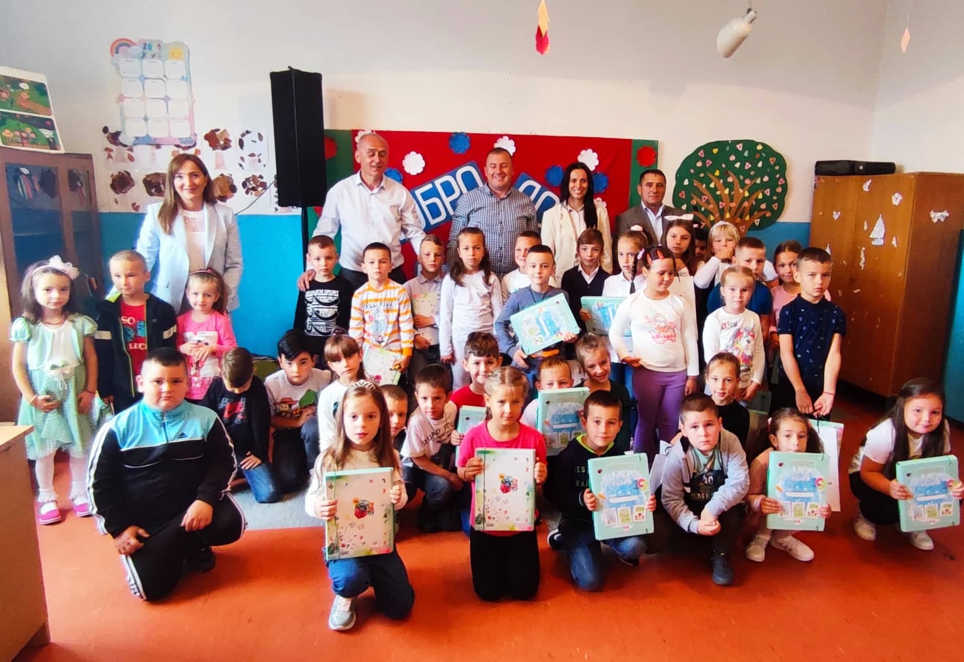 У нове школске клупе њих тридесетосмеро у овој установи је јутрос добило своје прве књиге које им је обезбједило Министарство, али и поклон пакете од Општине Кнежево.