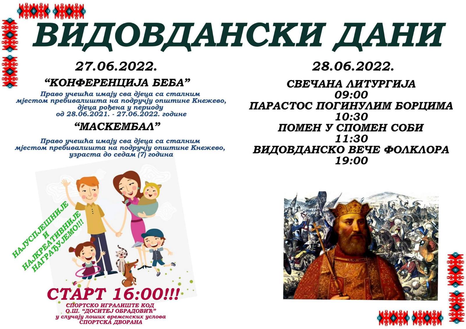 Povodom Vidovdana jednog od najvećih srpskih praznika, Opština Kneževo ove godine organizuje sada već treću po redu manifestaciju pod nazivom „Vidovdanski dani“.