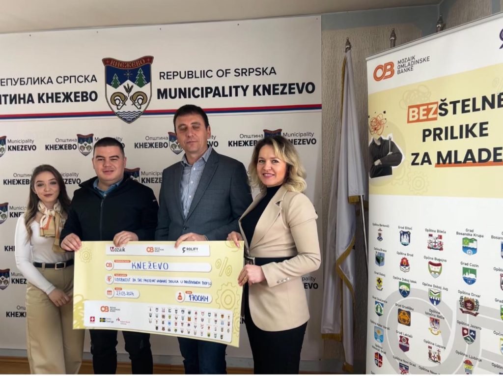 „Ovaj paket svake godine podrži 5 projekata, kroz sistem glasanja putem aplikacije. Kroz dodatna sredstva koje uplati Opština i Fondacija obezbjedi se finansiranje svih apliciranih projekata, jer nam je cilj da se mladi aktiviraju, sami prepoznaju probleme i kroz ovaj program podržimo njihove društveno korisne ideje. Ove godine Opština Kneževo i Fondacija Mozaik će obezbjediti dodatna sredstva u iznosu od 8.890 KM i time omogućiti finansiranje svih 10 apliciranih projekata. “ – naglasio je Borojević.