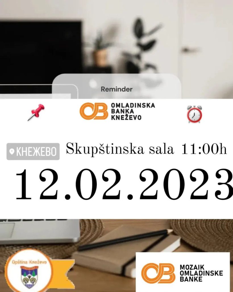 Odbor Omladinske banke Kneževo će danas (12.02.2024.godine) realizovati dvije radionice kako bi mladima i svim zainteresovanim građanima prezentovala program Omladinske banke i pomogli im da uspješno apliciraju za bespovratna sredstva za projekat ili mikrobiznis. Najava ovih radionica je objavljena na facebook i instagram stranici Omladinske banke Kneževo.