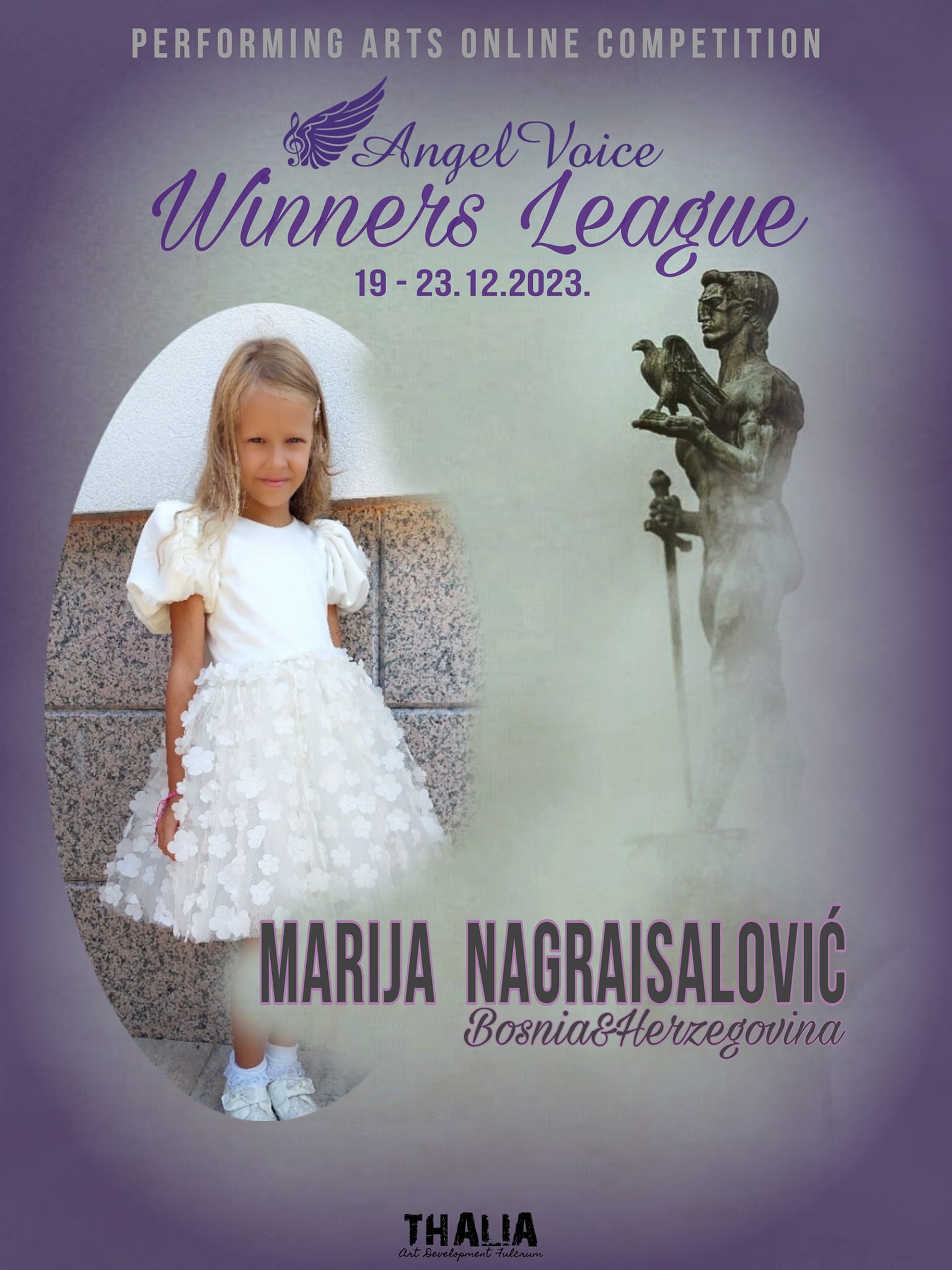 Upravo ova djevojčica predstavlja Bosnu i Hercegovinu na Angel Voice Winners Leauge audince award. Angel Voice je internacionalni muzički festival koji se održava u Beogradu. Postoji i online edicije. Ovaj muzički festival traje od 19-23.decembra ove godine.