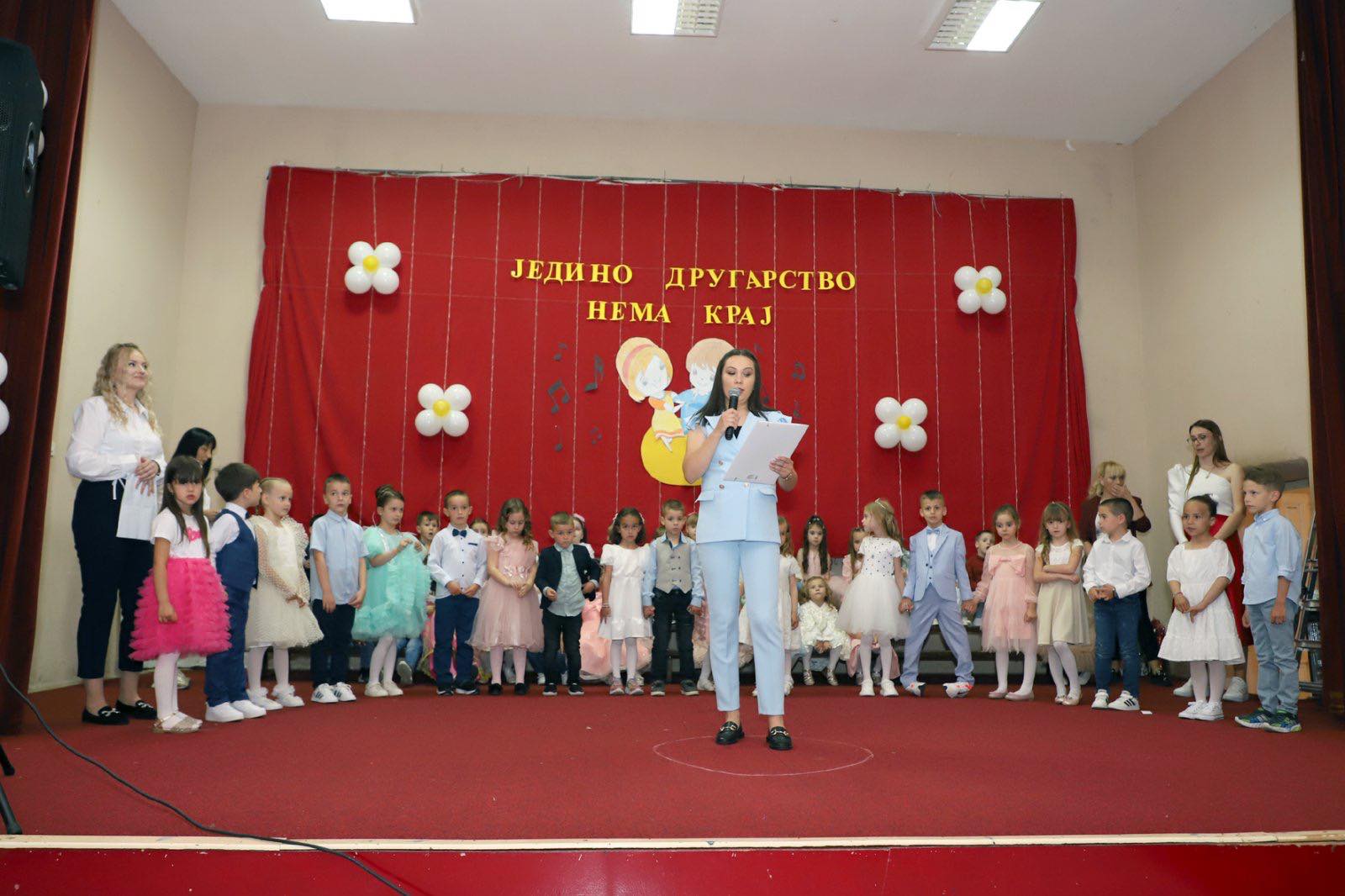 Ona se, u ime kolektiva i u svoje lično ime, zahvalila budućim prvačićima i poželjela im srećan polazak u školu, da budu dobri đaci i prvenstveno dobri ljudi, a njihovim roditeljima se zahvalila na saradnji.