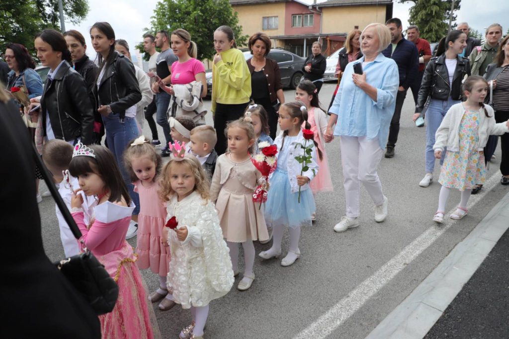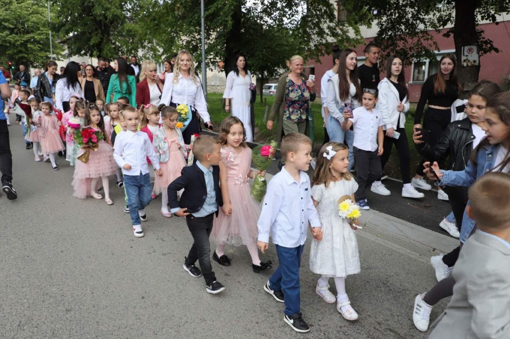 Mališani iz vrtića “Radojka Lakić” iz Kneževa, koji u septembru kreću u školu, danas su svečano prošetali Kneževom, uprkos najavljenoj kiši.