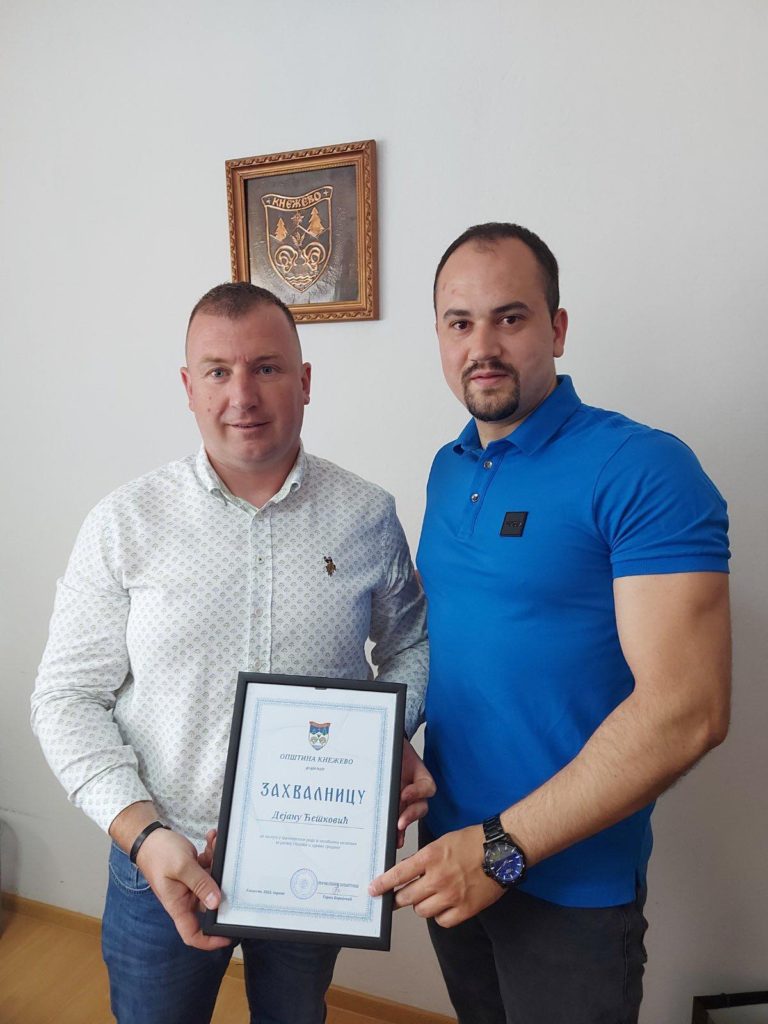 On je takođe uručio i zahvalnicu i treneru karatea Dejanu Ćetković i Draženku Panić, i novčanu nagradu za Karate klub Kneževo, kao vid podrške za unaprijeđenje i razvoj ovog kluba.