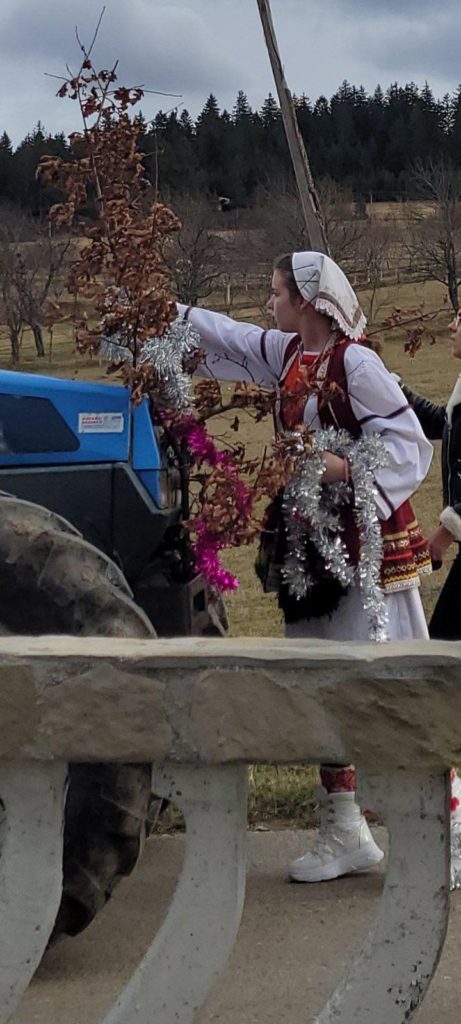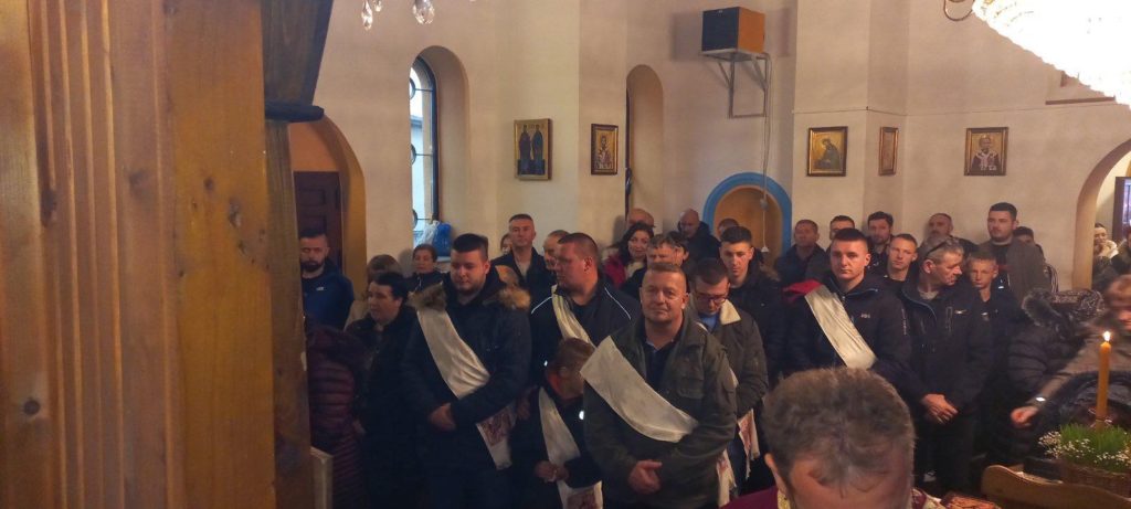 Mještani iz ulice Milana Tepića, domaćini ovogodišnjeg badnjaka u Kneževu, kako drevni običaji nalažu su prije zore usjekli badnjak, okitili, i u svečanoj povorki dovezli pred Hram.