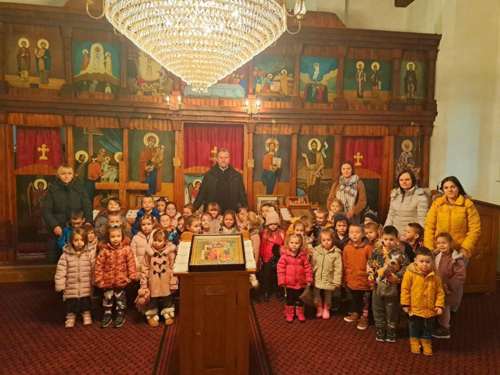 Povodom sutrašnjeg praznika mališani su i organizovano posjetili Crkvu Rođenja Presvete Bogorodice u Kneževu.